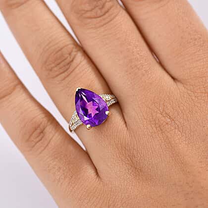 - Brilliant 14x10mm pear-cut amethyst radiates vivid violet tones