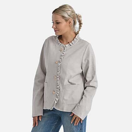 - Maisi Frill Trim Jacket With Gold Buttons - Pockets (Size 12 to 14) - Beige