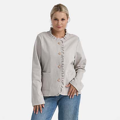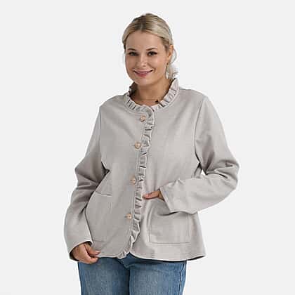 - Maisi Frill Trim Jacket With Gold Buttons - Pockets (Size 20 to 22) - Beige