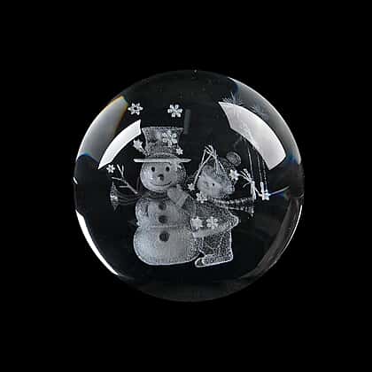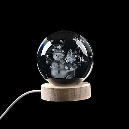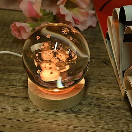 3D Engraved Snowman Crystal Ball with LED RGB Colour Changing Light and Wooden Base with USB Cable