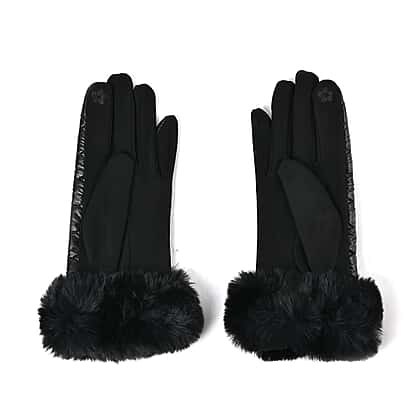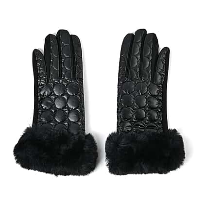 Quilting Gloves With Faxu Fur Culf & Screen Touch Mode - Black
