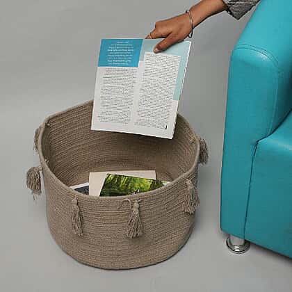 100% Cotton Braided Multipurpose Beige Basket With Tassels