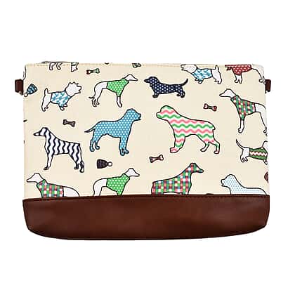100% Cotton Canvas Dog & Bone Pattern Mini Crossbody Bag (Size 24x17x4 Cm) - Beige