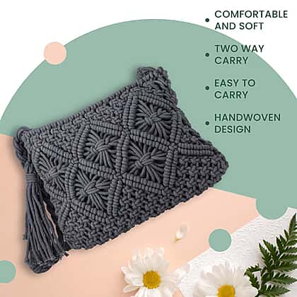 You'll stand out in this fringed 100 percent cotton crossbody macrame bag. Cotton is silky and gentle to the touch, and it does not irritate the skin. This bag may be worn as a clutch or as a crossbody bag thanks to the woven strap. It provides plenty of space for your phone, wallet, and cosmetics. The well-thought-out zip opening enables for secure storage without the risk of misplacing items. Long, silky cotton handles make it easy to carry and maintain a secure grasp.