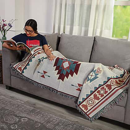 - SIMPLE YET ELEGANT: Make a simple yet elegant statement with this Jacquard Woven fringed printed throw blanket