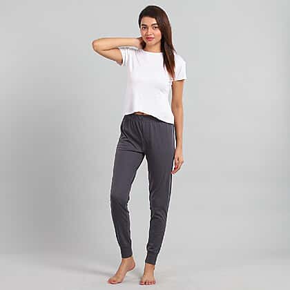 100% Cotton Single Jersey Loungewear Leggings in Black (Size Large)