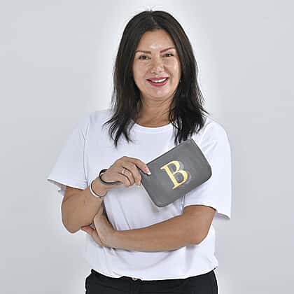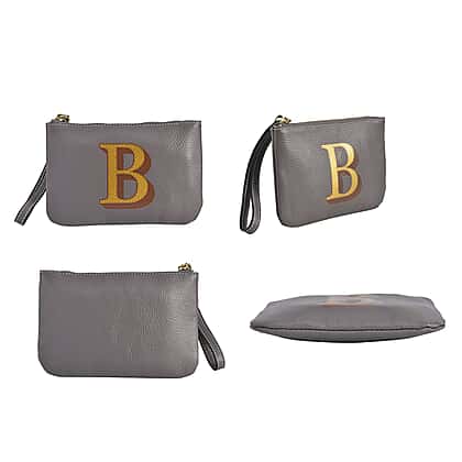 100% Genuine Leather B Letterpress Wristlet Clutch - Grey