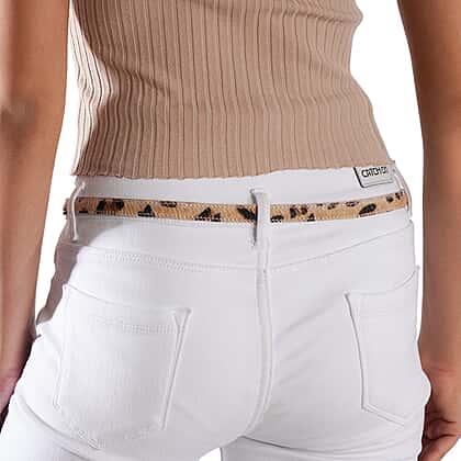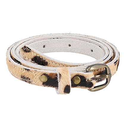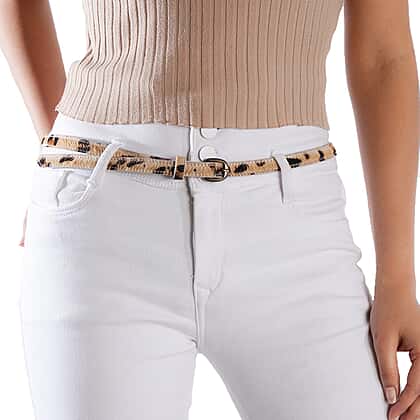 This leopard print leather belt makes a charming addition to your fashion wardrobe. This belt is made of genuine leather and has an iconic leopard print, providing a chic style. This slim-looking belt will fasten your jeans or be a fashionable grip with a kaftan or dress. This belt has a metallic buckle, providing easy locking and giving you different size parameters with the holes. You can adjust the size by digging more cavities with the required tools. You can get this for yourself or gift it to a woman to help her elevate her style.