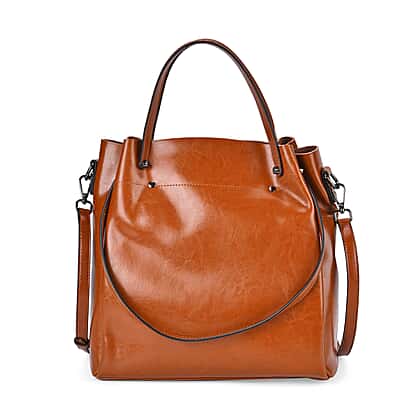 100% Genuine Leather Convertible Bag with Handle Drop & Deteachable Long Strap (120cm) - Tan