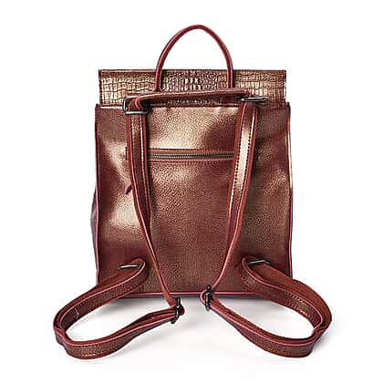 100% Genuine Leather Croc Embossed Backpack (Size 36x33x13 Cm) - Brown