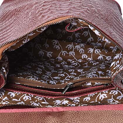 100% Genuine Leather Croc Embossed Backpack in Brown Colour Size 36x33x13 Cm
