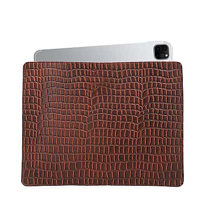 100% Genuine Leather Croc Embossed Pattern iPad Sleeve with Magnetic Push Button - Dark Brown