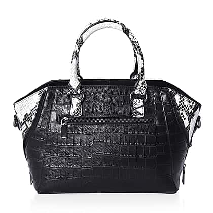 100% Genuine Leather Croc Embossed Tote Bag with Snake Skin Pattern in Black Colour Size 29x15x22 Cm