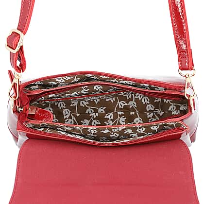 100% Genuine Leather Crossbody Bag with Adjustable Shoulder Starp (25x9.5x17cm) - Burgundy