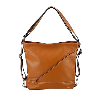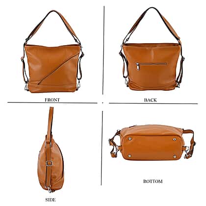 100% Genuine Leather Crossbody Bag with Adjustable Strap - Tan