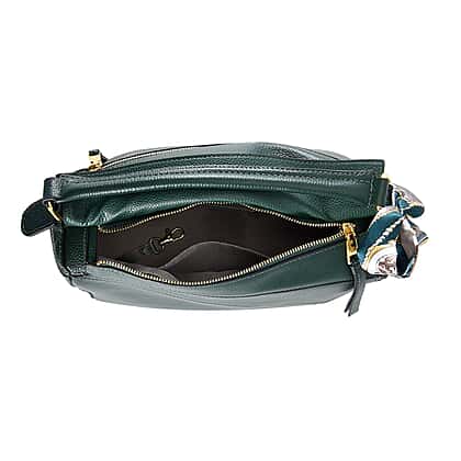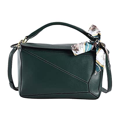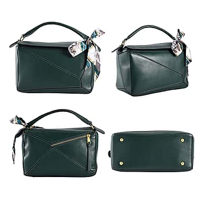100% Genuine Leather Desginer Inspired Handbag with Detachable Long Strap - Green