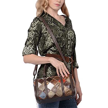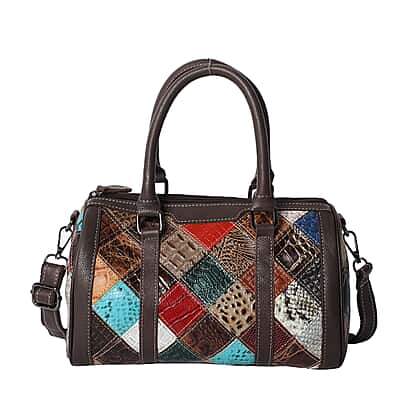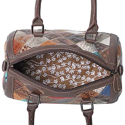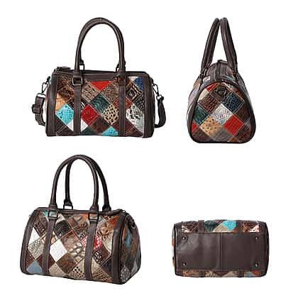100% Genuine Leather Diamond Pattern Bowling Bag with Detachable Shoulder Strap (Size 28x16x16 Cm- Multi Colour