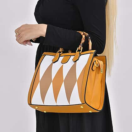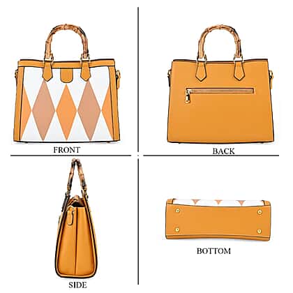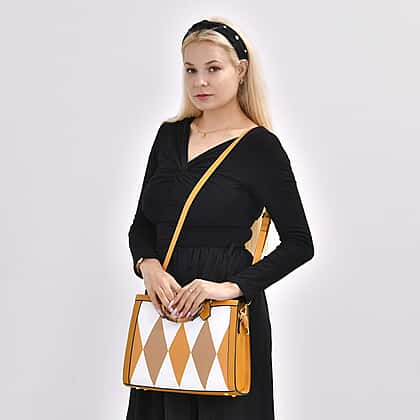 This Genuine Leather Diamond Pattern Crossbody Bag with Shoulder Strap is the perfect companion for daily adventures. Featuring a striking diamond pattern and a unique bamboo-shaped handle, this bag combines elegance with functionality. Its spacious interior is divided into two main compartments, a middle slip pocket and a zip pocket, allowing you to organise your essentials effortlessly. The handle drop makes it versatile for shoulder or crossbody wear. Whether for work or a casual day out, this bag will add a stylish edge to any look.