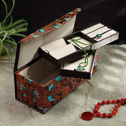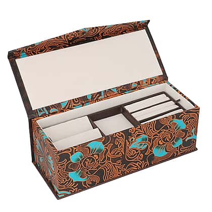 100% Genuine Leather Embossed 2 Tier Jewellery Box (Size 31x12x11 Cm) - Multi