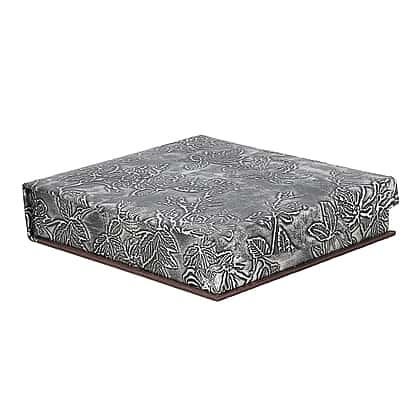100% Genuine Leather Embossed Jewellery Box (Size 18x20x4 Cm) - Grey