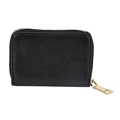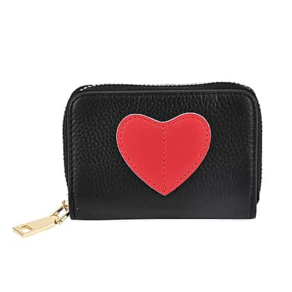 100% Genuine Leather Heart Print Card Wallet With RFID Protection - Black