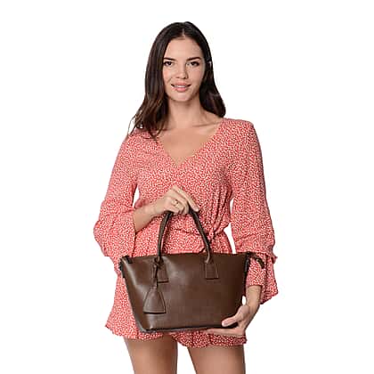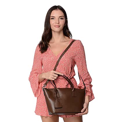100% Genuine Leather Litchi Pattern Bag with Detachable Shoulder Strap in Dark Brown Colour Size 27x14x23 Cm