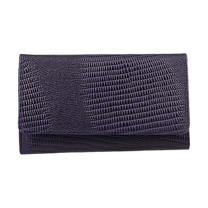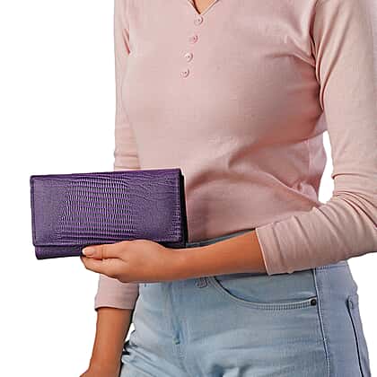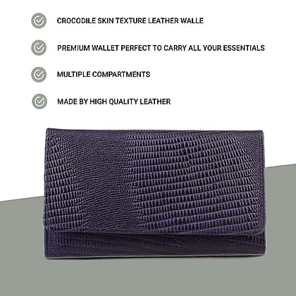 100% Genuine Leather Lizard Embossed Womens RFID Protected Wallet - Purple