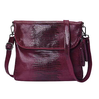 100% Genuine Leather Lizard Skin Pattern Crossbody Bag with Adjustable Strap (Size 24x3x24 Cm) - Wine Red