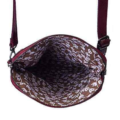 100% Genuine Leather Lizard Skin Pattern Crossbody Bag with Adjustable Strap - Wine Red