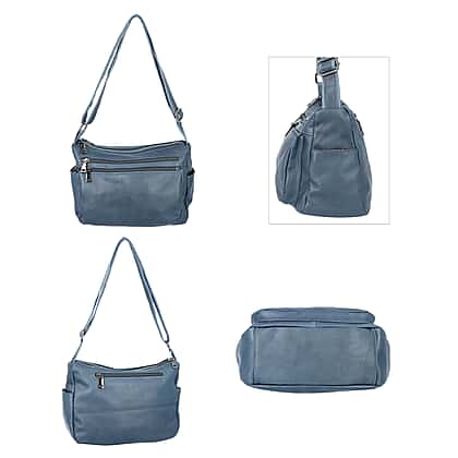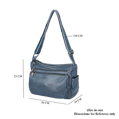 100% Genuine Leather Multiple Pocket Black Crossbody Bag with Zipper Closure and Adjustable Shoulder Strap Size Details 28x23x10 Cm Blue
