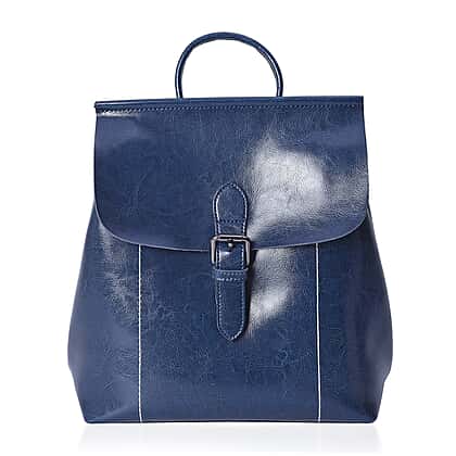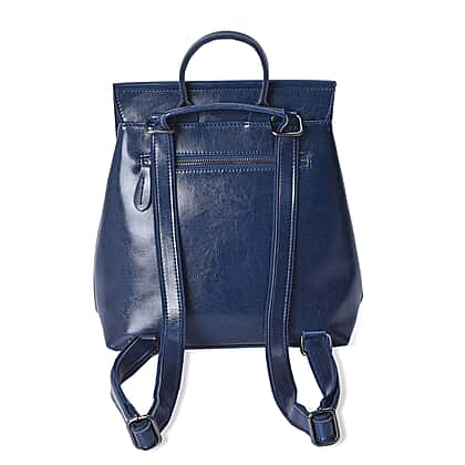 - Premium finished 100% genuine leather navy blue backpack in blue
