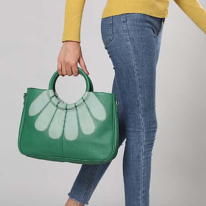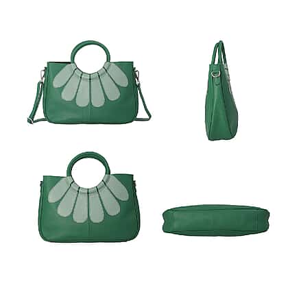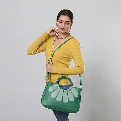 100% Genuine Leather Satchel Bag with Detachable Shoulder Strap (Size 35x24x9 Cm) - Dark Green