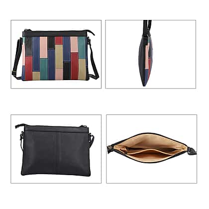 100% Genuine Leather Sling Bag with Shoulder Strap (Strap Size:115cm, Bag Size:26x20 CM) - Black and Multi Colour