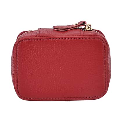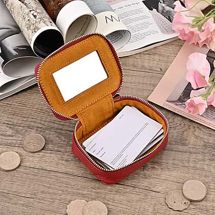 100% Genuine Leather Small Case with Mirror - Burgundy