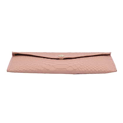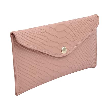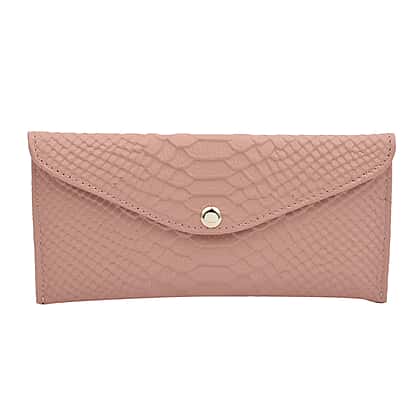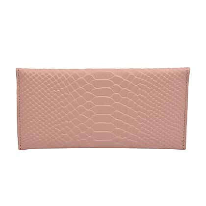 100% Genuine Leather RFID Protected Snakeskin Pattern Long Size Wallet with Magnetic Closure - Pink