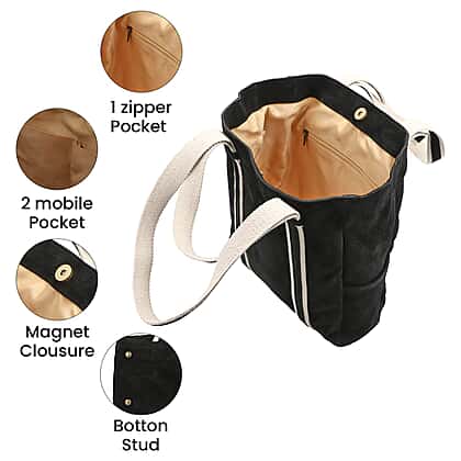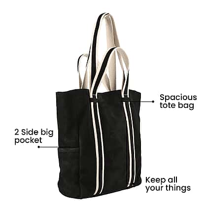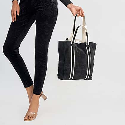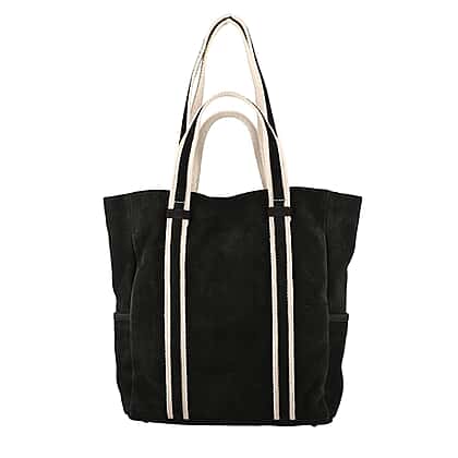 100% Genuine Leather Suede Tote Bag (Size 30x27x10 cm) - Black