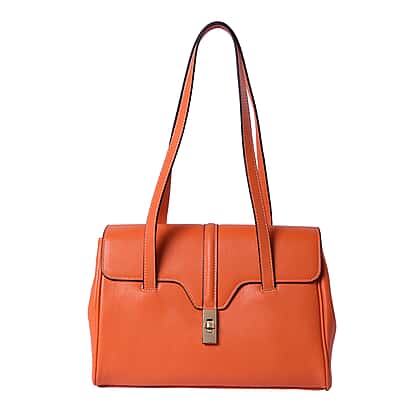 100% Genuine Leather Tote Bag (Size: 34x12x22cm) - Orange