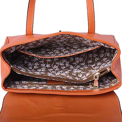 100% Genuine Leather Tote Bag in Orange Colour