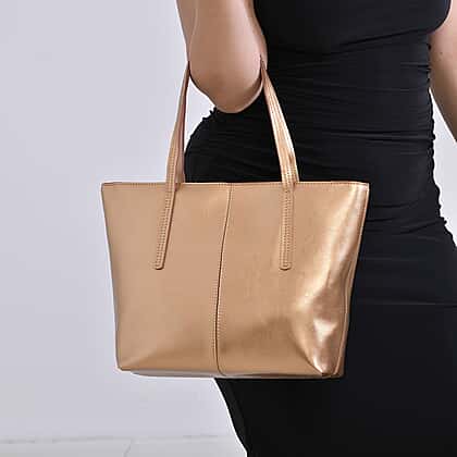 100% Genuine Leather Tote Bag (Size 39x12x27 cm) - Gold