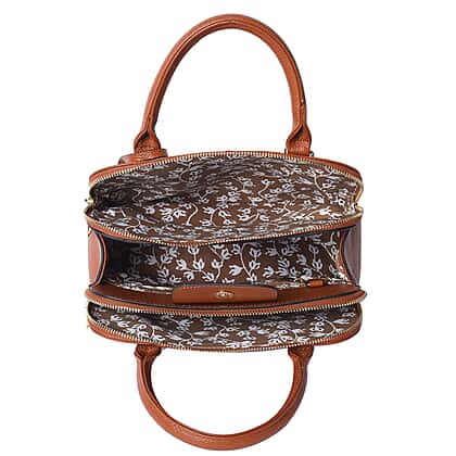 Genuine Leather Tote Bag with Shoulder Strap - Tan