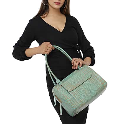 100% Genuine Leather Two Tone Shoulder Bag (Size 29x12x23 Cm) - Mint Green
