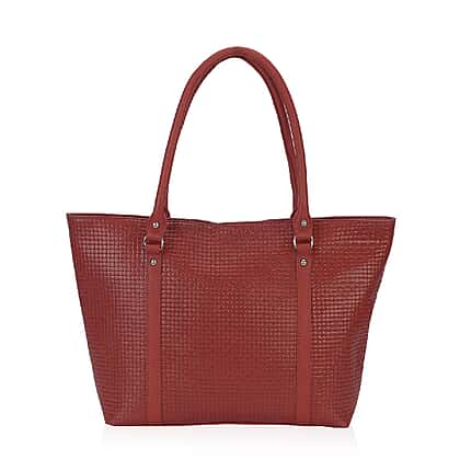 100% Genuine Leather Weave Pattern RFID Protected Tote Bag Size 43x28.5x8 Cm in Red Colour