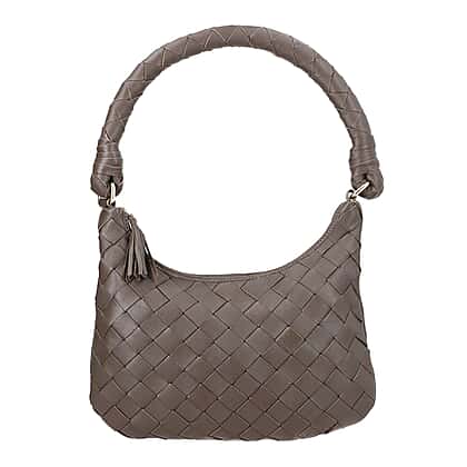 100% Genuine Leather Weaved Shoulder Hobo Bag - Dark Brown