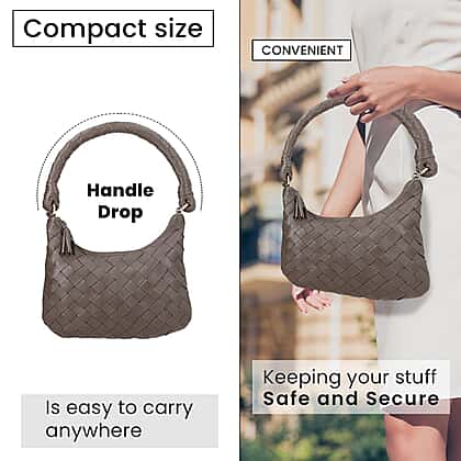 This Genuine Leather Weaved Shoulder Hobo Bag is the perfect accessory to elevate your style. This bag is crafted from high-quality, 100% genuine leather, ensuring durability and longevity. The intricate weave design adds a unique touch to the bag, making it stand out from the crowd. Measuring 31x19 cm, this bag is spacious enough to hold all your essentials while still being compact enough to carry comfortably on your shoulder.
