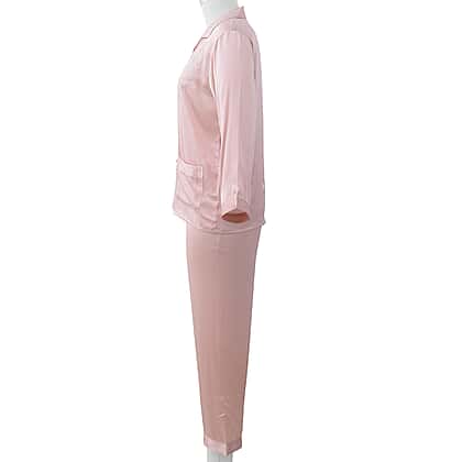 Mulberry Silk Pyjama Long Sleeves with Embroidery in Powder Pink Colour