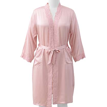 100% Mulberry Silk Robe with Lace in Powder Pink Colour - Size L (Fits M-L)