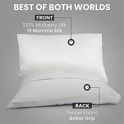 - QUALITY MATERIAL: This pillowcase has two layers of comfort, one of which is 100% mulberry 19 momme silk. On the other side of the pillow, Tencel is used. Dermatologists recommend silk pillowcases because they are gentler on the skin than cotton pillowcases