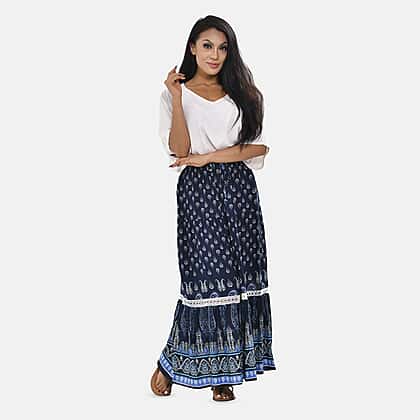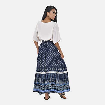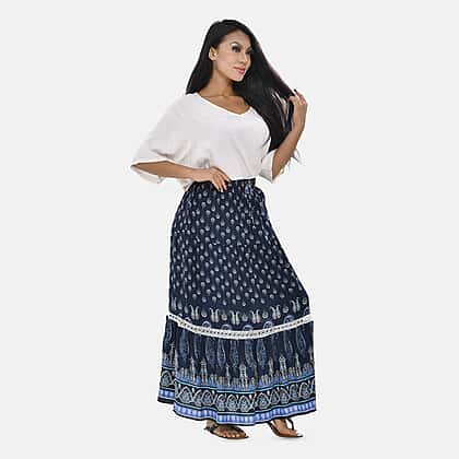 100% Viscose Close Out Print Maxi Skirts (One size 8-18 ) - Navy Blue