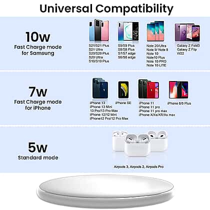 Special Feature10W, Durable, Fast Charge, LED Indicator Lights, Lightweight, Multi-Device Charging, Portable, Rechargable, Supports Android & iPhone Charging, Wireless