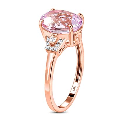 14K Rose Gold AAA Kunzite and Diamond Ring 5.00 Ct
